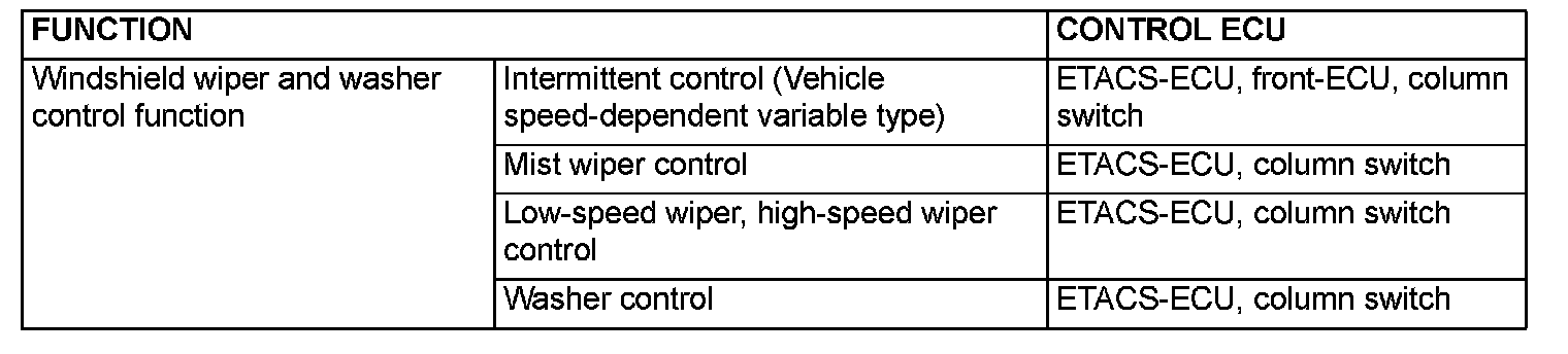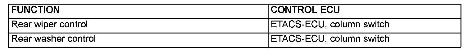 GENERAL DESCRIPTION CONCERNING THE REAR WIPER AND WASHER The following ECUs affect the functions and control of the rear wiper and washer.