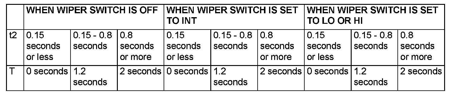 NOTE: The wiper drive signal output time varies according to the conditions. Refer to the following table for details.