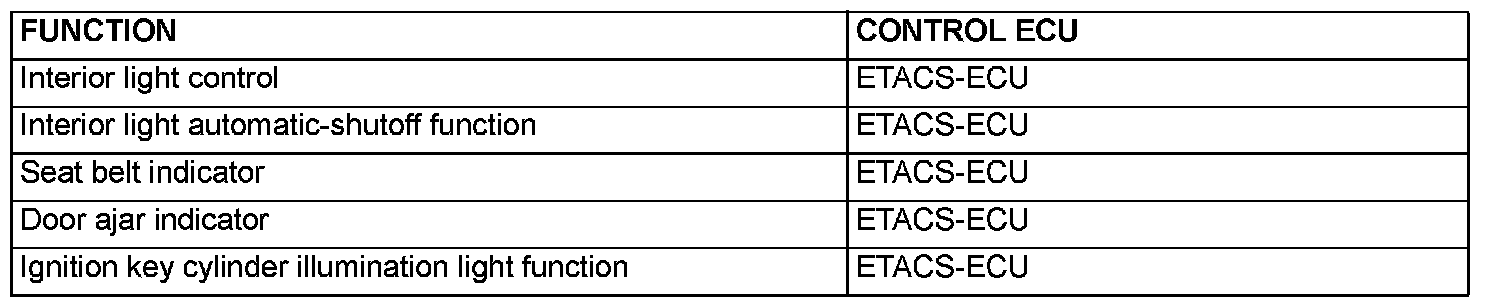 The ETACS-ECU controls the interior lights by turning them on and off in the following way:
