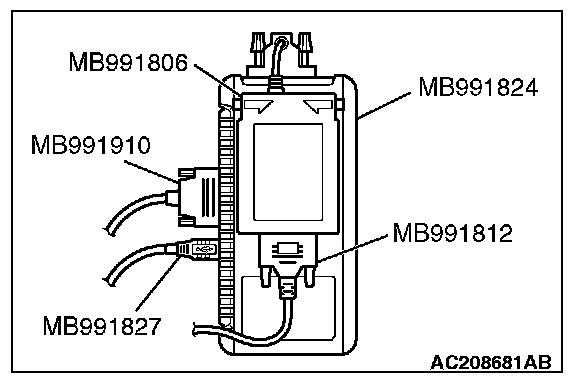 3. Connect special tool MB991827 to special tool MB991824 and the personal computer.