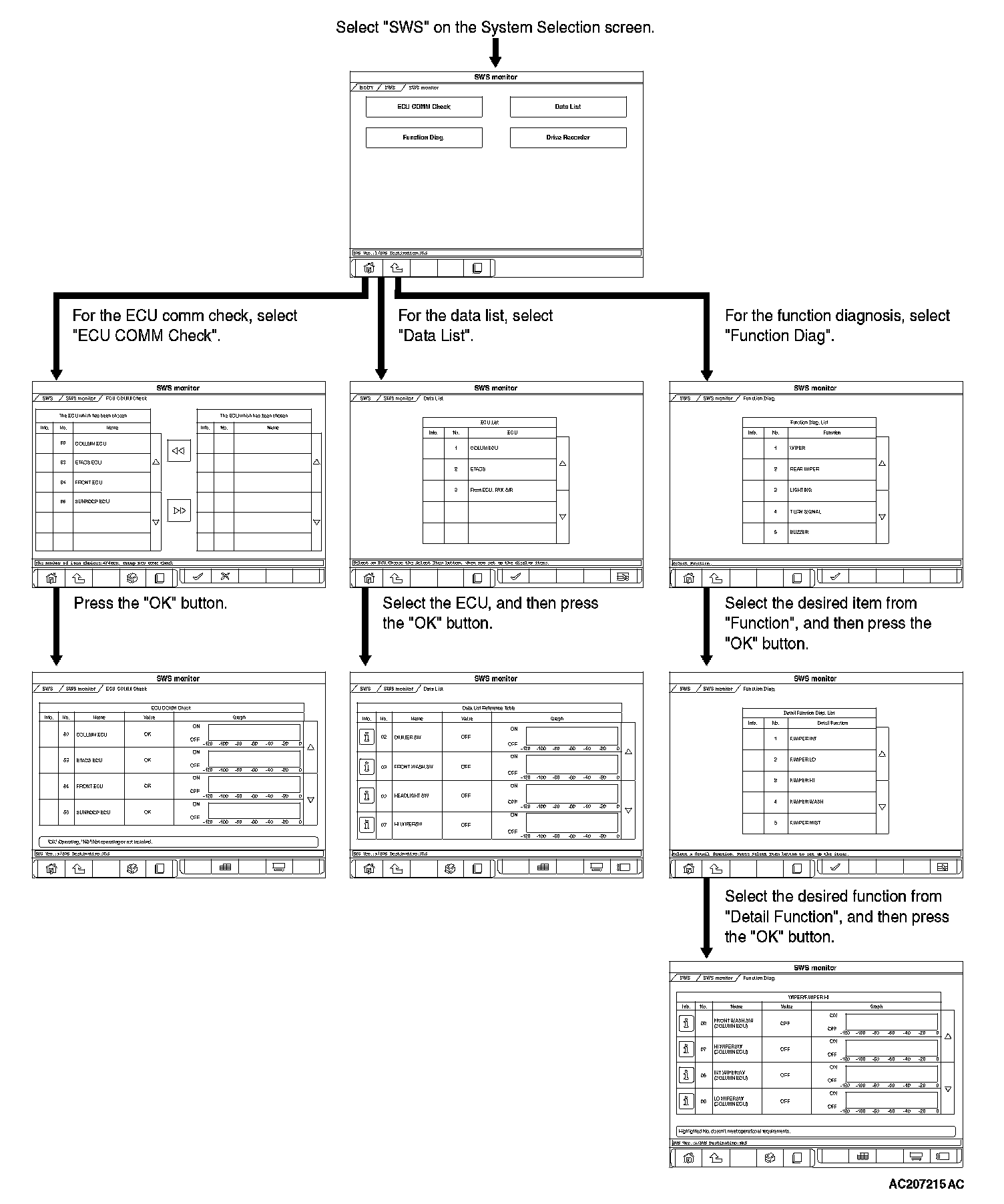 To carry out troubleshooting, operate scan tool MB991958 (M.U.T.-III Sub Assembly) as follows.