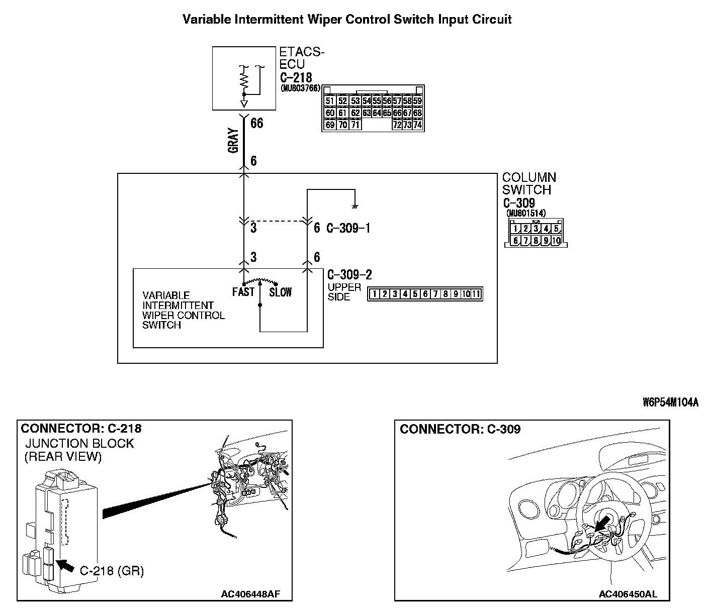 STEP 5. Check the wiring harness between column switch connector C-309 (terminal 6) and ETACS-ECU connector C-218 (terminal 66).