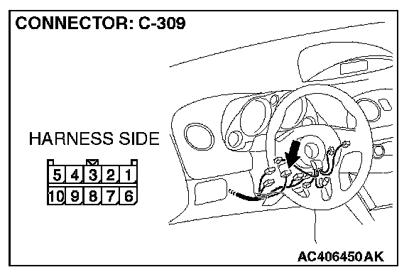 STEP 1. Check column switch connector C-309 for loose, corroded or damaged terminals, or terminals pushed back in the connector.