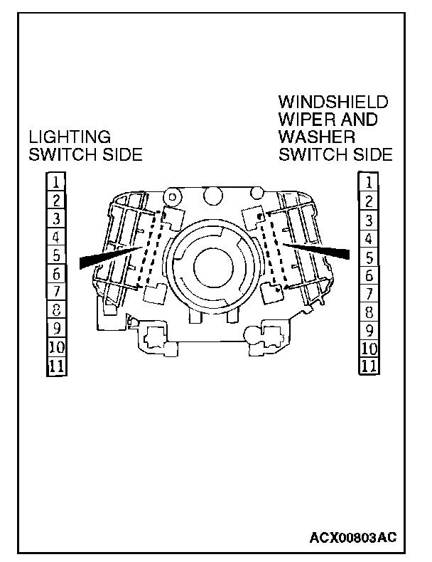 1. Remove the windshield wiper and washer switch, and check at the switch side.