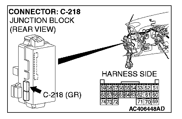 STEP 4. Check ETACS-ECU connector C-218 for loose, corroded or damaged terminals, or terminals pushed back in the connector.