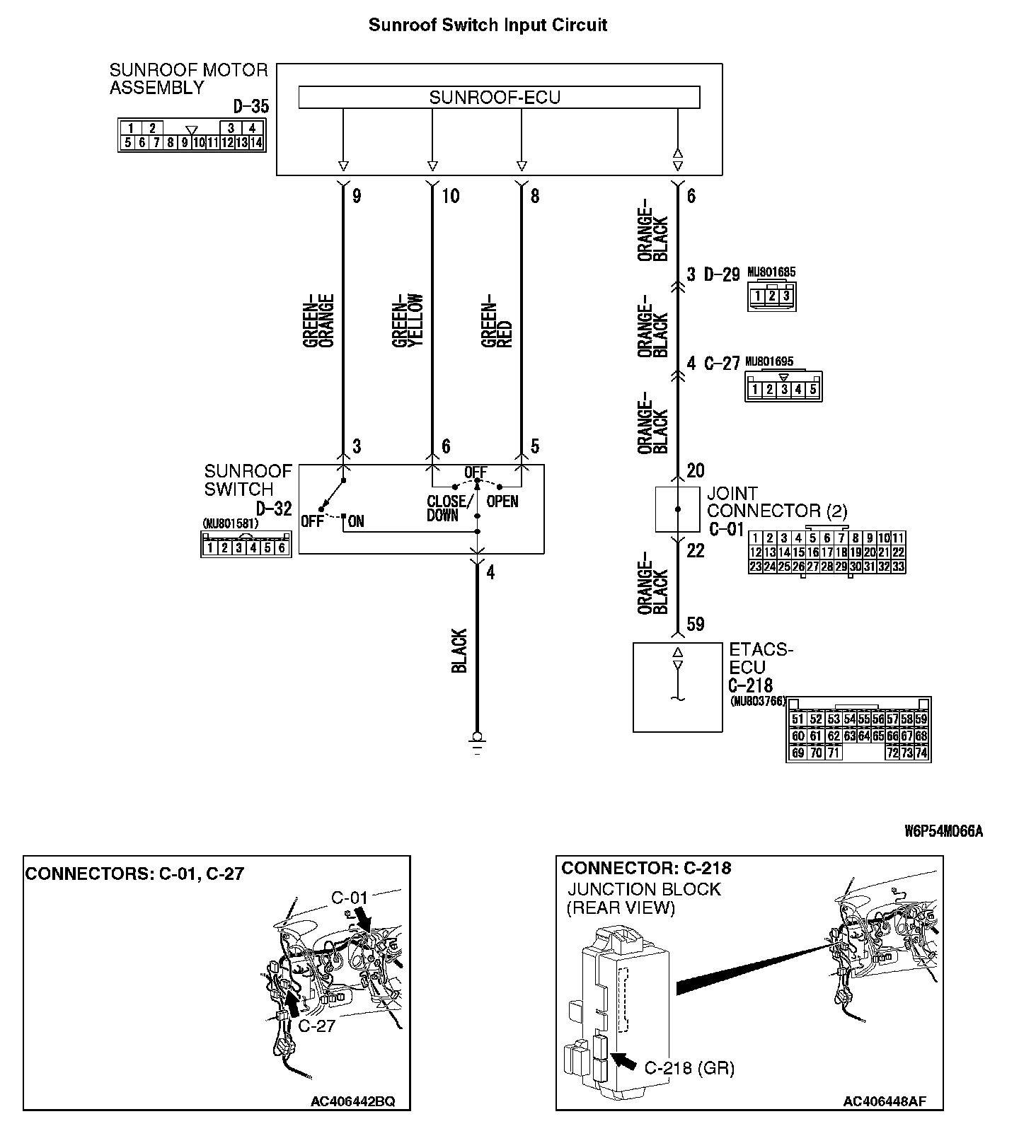 Q: Are sunroof motor assembly connector D-35 and ETACS-ECU connector C-218 in good condition?