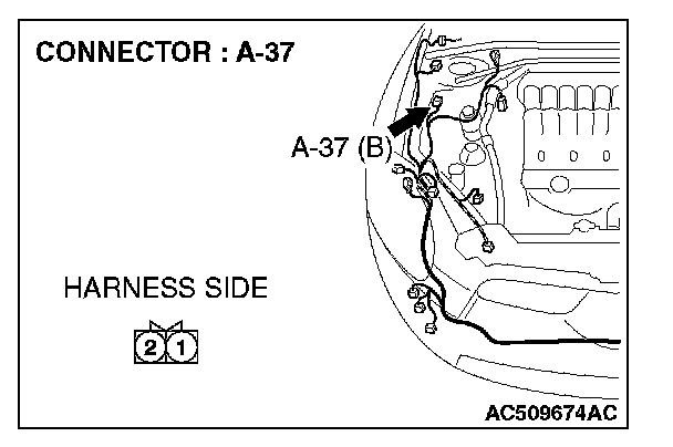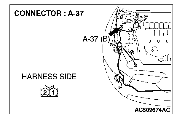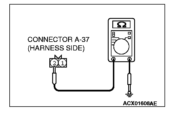 STEP 4. Check the wiring harness between hood switch connector A-37 (terminal 2) and ground.