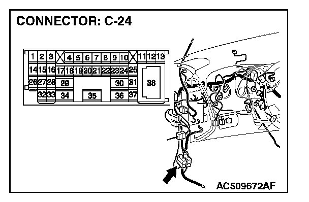NOTE: Also check intermediate connector C-24 for loose, corroded, or damaged terminals, or terminals pushed back in the connector. If intermediate connector C-24 is damaged, Repair or replace the damaged component(s) as described.
