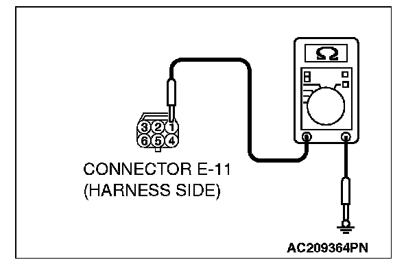STEP 4. Check the ground circuit to the door lock actuator (LH). Measure the resistance at door lock actuator (LH) connector E-11.
