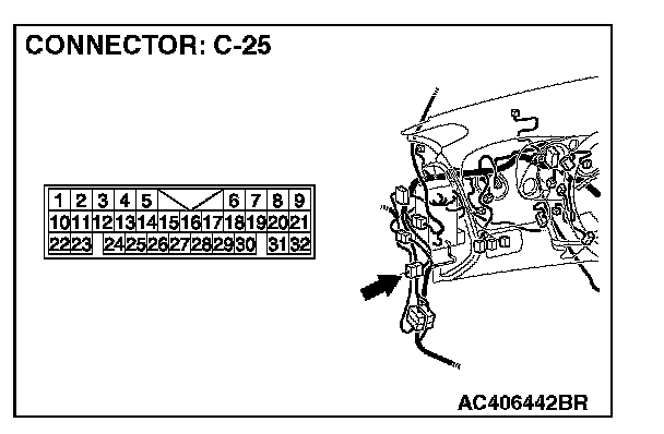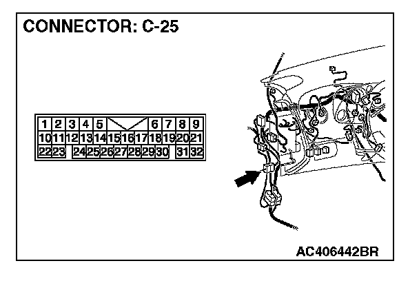 NOTE: Also check intermediate connector C-25 for loose, corroded, or damaged terminals, or terminals pushed back in the connector. If intermediate connector C-25 is damaged, repair or replace the connector as described.
