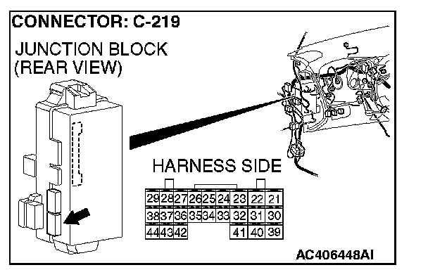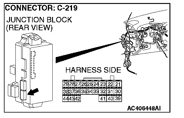 STEP 6. Check ETACS-ECU connector C-219 for loose, corroded or damaged terminals, or terminals pushed back in the connector.