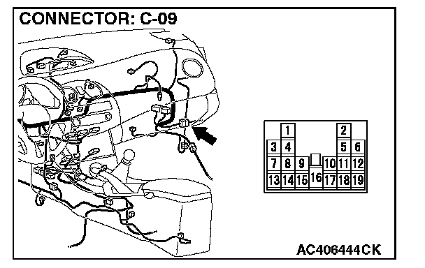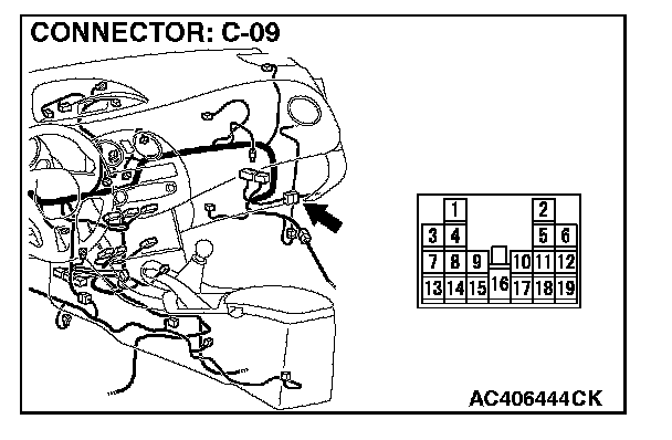NOTE: Also check intermediate connector C-09 for loose, corroded, or damaged terminals, or terminals pushed back in the connector. If intermediate connector C-09 is damaged, repair or replace the connector as described.