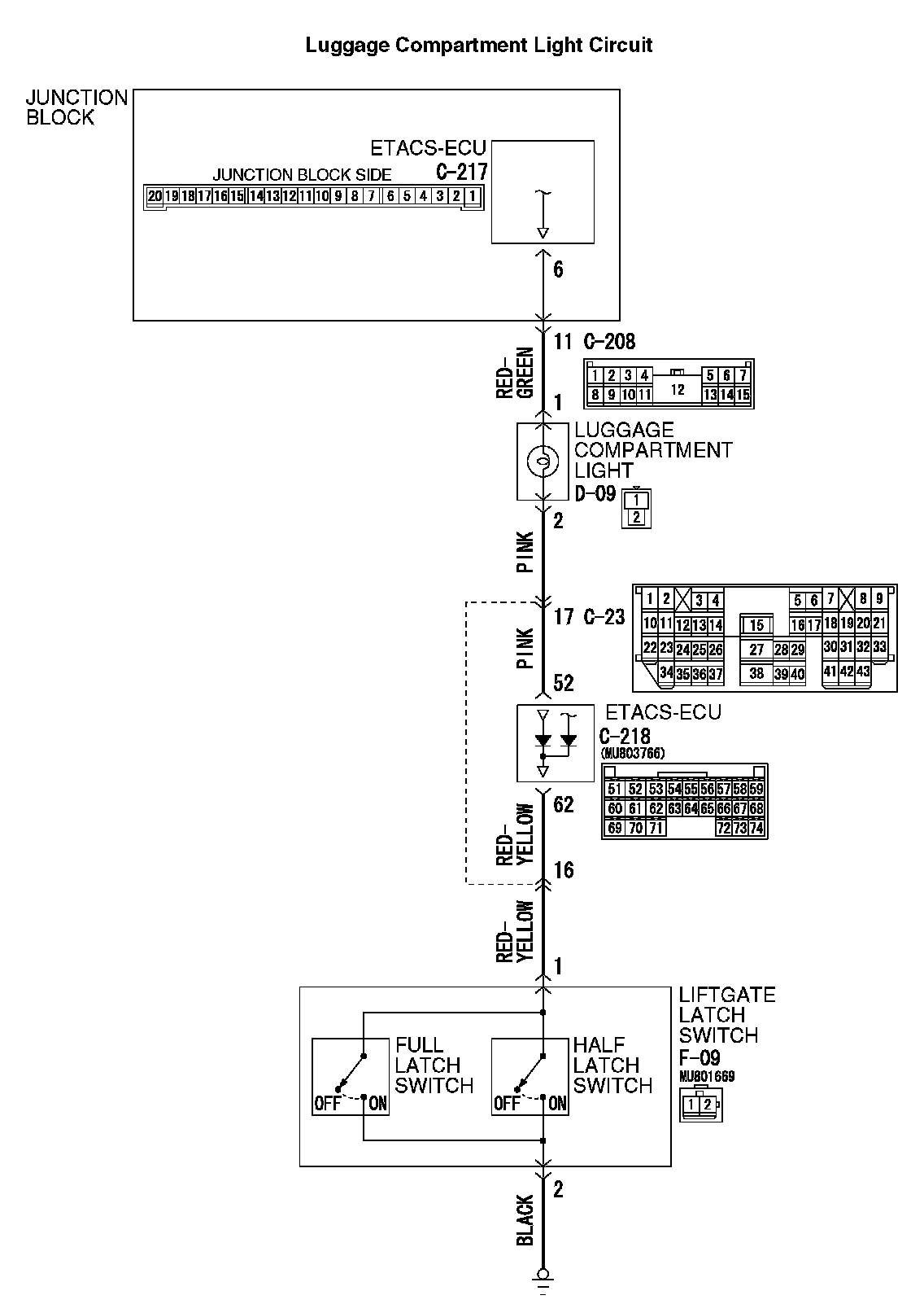 The ETACS-ECU operates the luggage compartment light according to signal from the liftgate latch switch.
