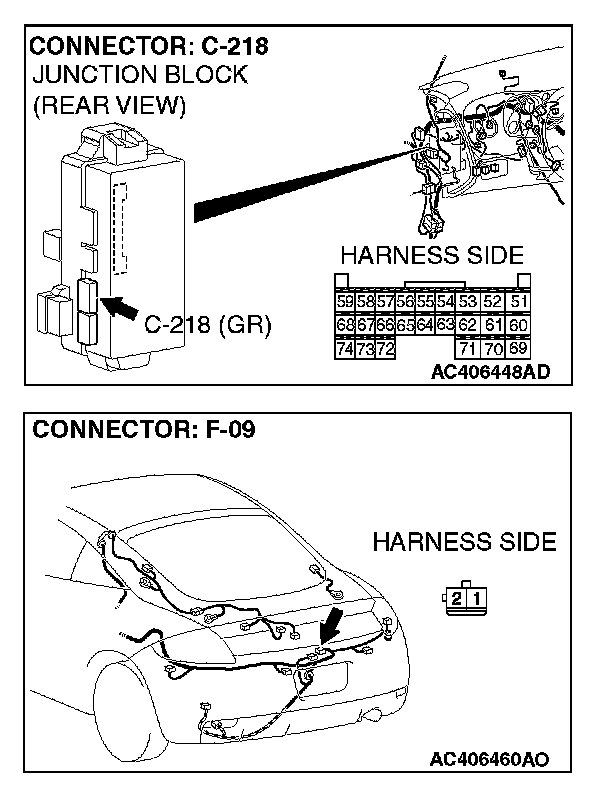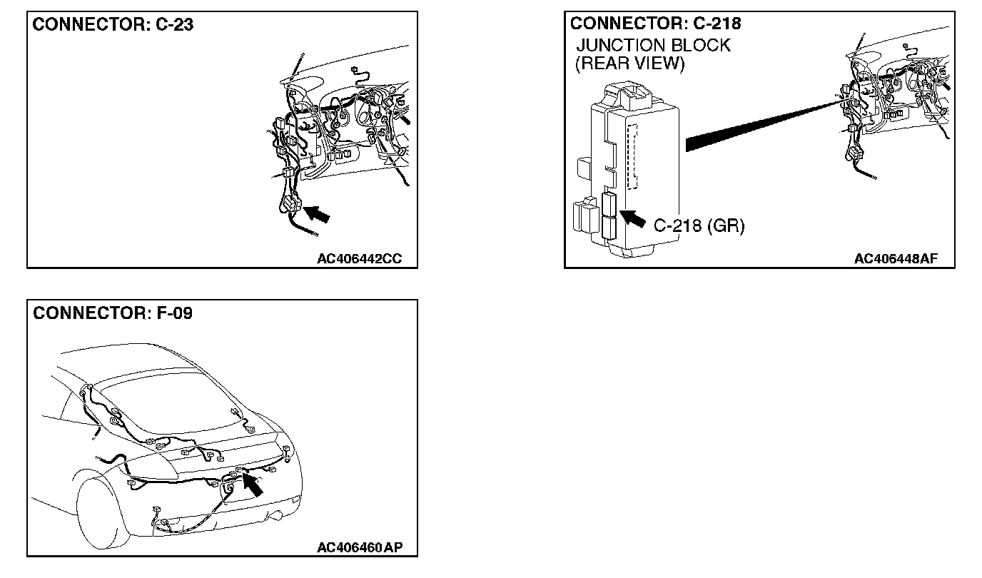 STEP 6. Check the wiring harness between liftgate latch switch connector F-09 (terminal 1) and ETACS-ECU connector C-218 (terminal 62).