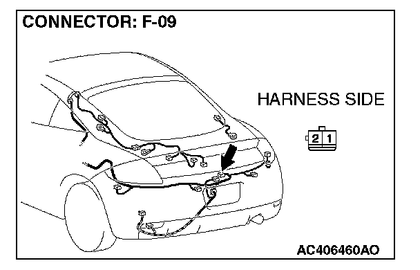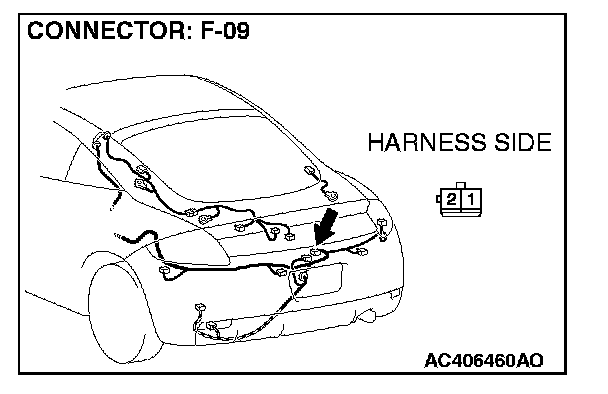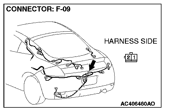 STEP 1. Check liftgate latch switch connector F-09 for loose, corroded or damaged terminals, or terminals pushed back in the connector.