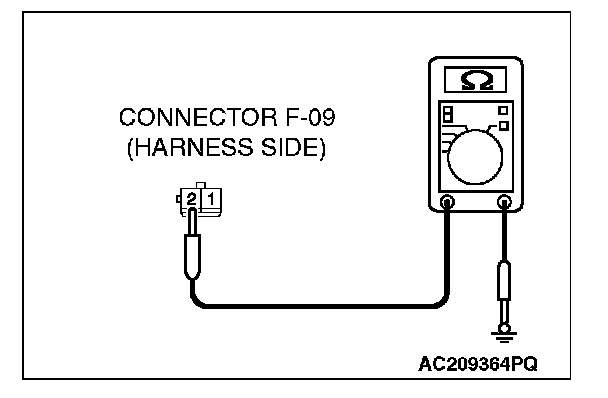 STEP 4. Check the wiring harness between liftgate latch switch connector F-09 (terminal 2) and ground.