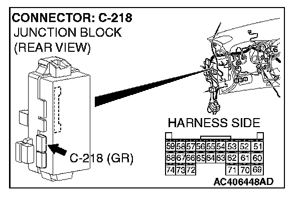 STEP 5. Check ETACS-ECU connector C-218 for loose, corroded or damaged terminals, or terminals pushed back in the connector.