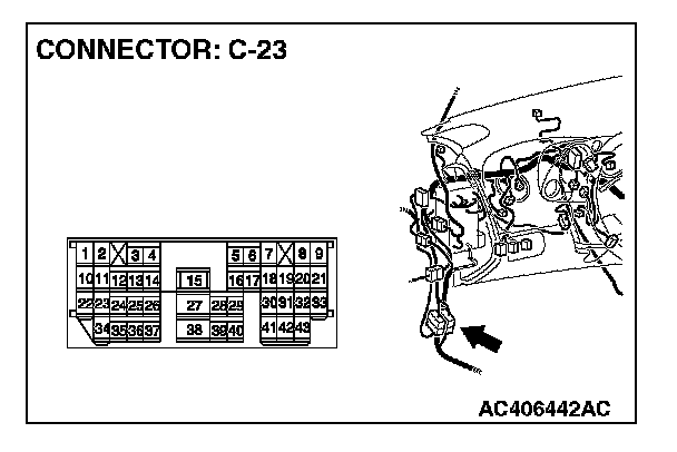 NOTE: Also check intermediate connector C-23 for loose, corroded, or damaged terminals, or terminals pushed back in the connector. If intermediate connector C-23 is damaged, repair or replace the connector as described.
