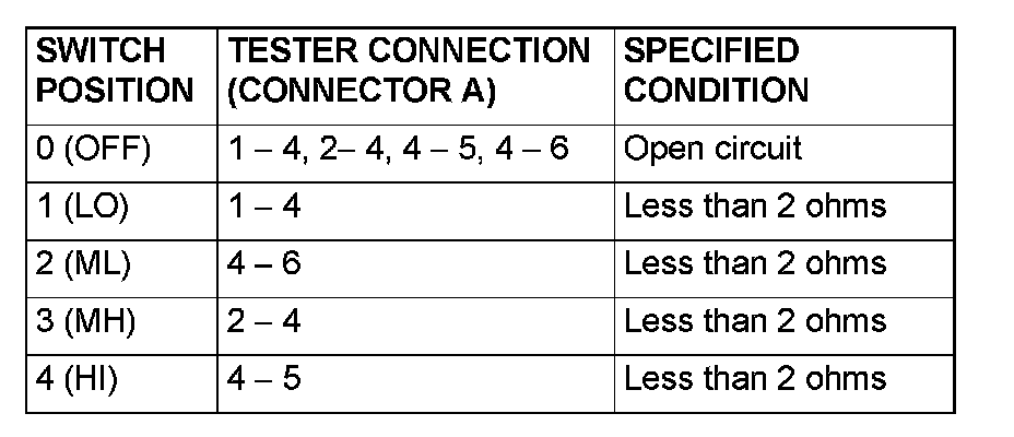 BLOWER SWITCH CONTINUITY CHECK