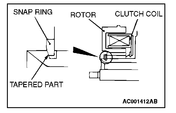 Using snap ring pliers, fit the snap ring so that the snap ring's tapered part is on the outside.