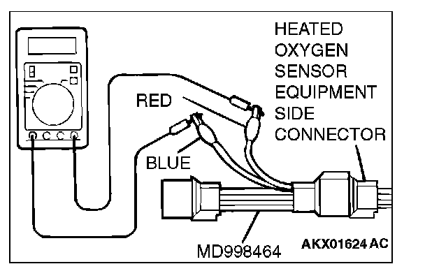 1. Disconnect the heated oxygen sensor connector and connect special tool MD998464 to the connector on the heated oxygen sensor side.