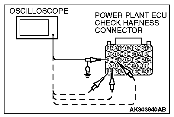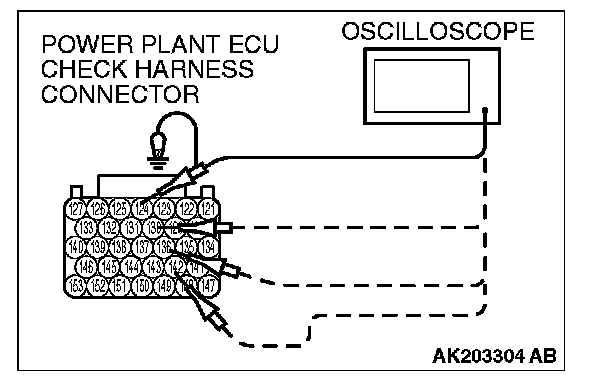 2. Connect the oscilloscope probe to check harness terminal No. 124, No. 130, No. 136 and No. 142. Standard Wave Pattern