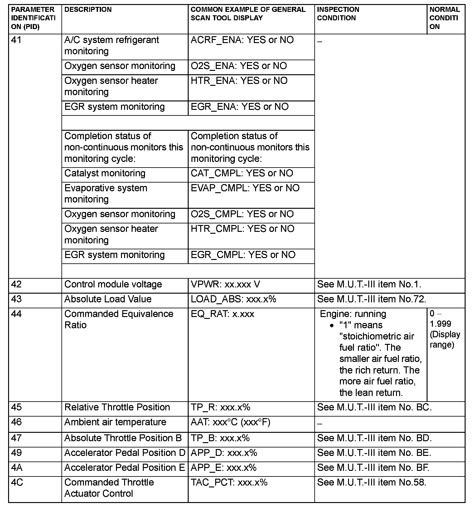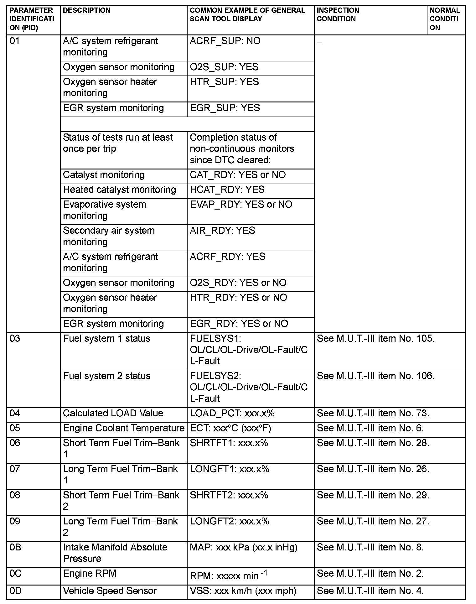 GENERAL SCAN TOOL (GST) MODE 01 REFERENCE TABLE