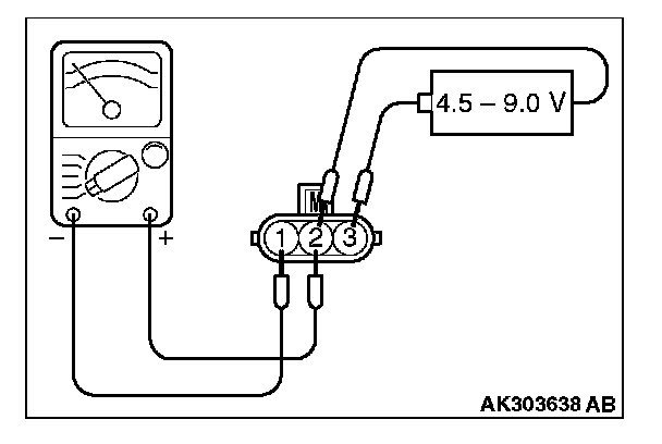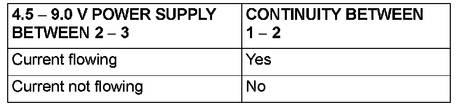 1. Connect and disconnect 4.5 - 9.0 V battery between terminal No. 2 and No. 3, and observe the ohmmeter whether there is continuity or not.