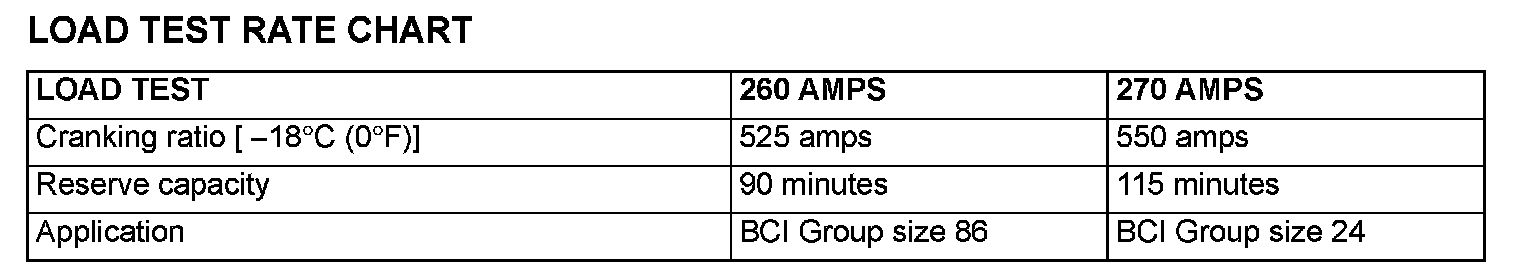 2. Load the battery at the recommended discharge rate (See LOAD TEST RATE CHART) for 15 seconds.