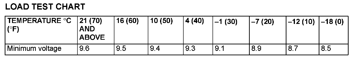 4. Compare the measured value with the minimum voltage. (See LOAD TEST CHART.)