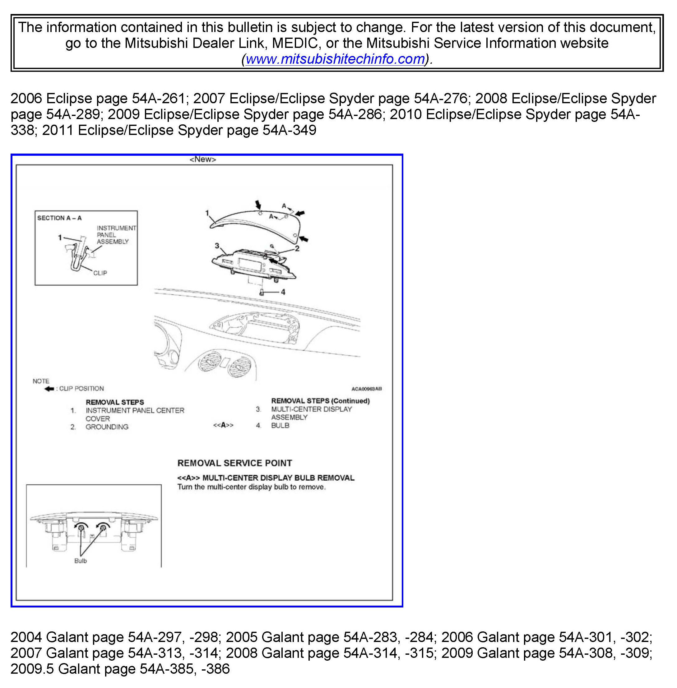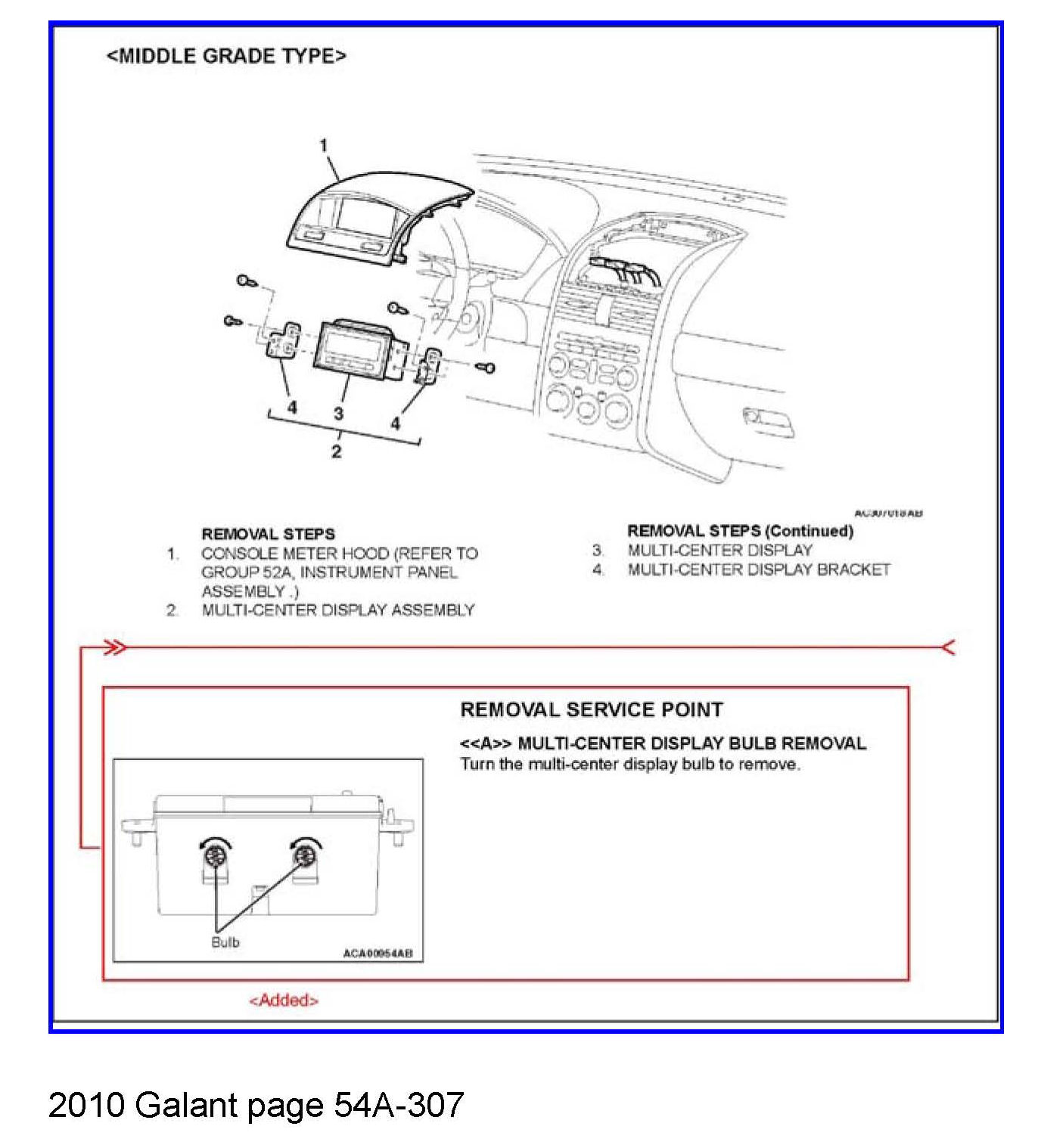MULTI-CENTER DISPLAY BULB REPLACEMENT - SERVICE MANUAL REVISION