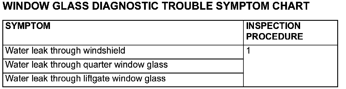 INSPECTION PROCEDURE 1: Water Leak Through Windshield/Water Leak Through Quarter Window Glass/Water Leak Though Liftgate Window Glass