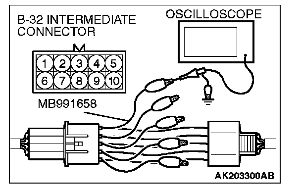 1. Disconnect the intermediate connector B-32, and connect the test harness special tool (MB991658) between the separated connector.