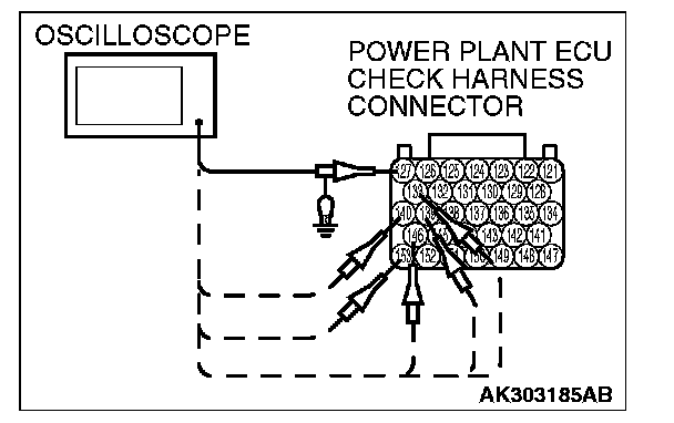 2. Connect the oscilloscope probe to check harness terminal No. 124, No. 130, No. 136 and No. 142.