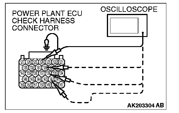 3. Connect the oscilloscope to check harness terminal No. 103. (Check the crankshaft position sensor signal wave pattern.)