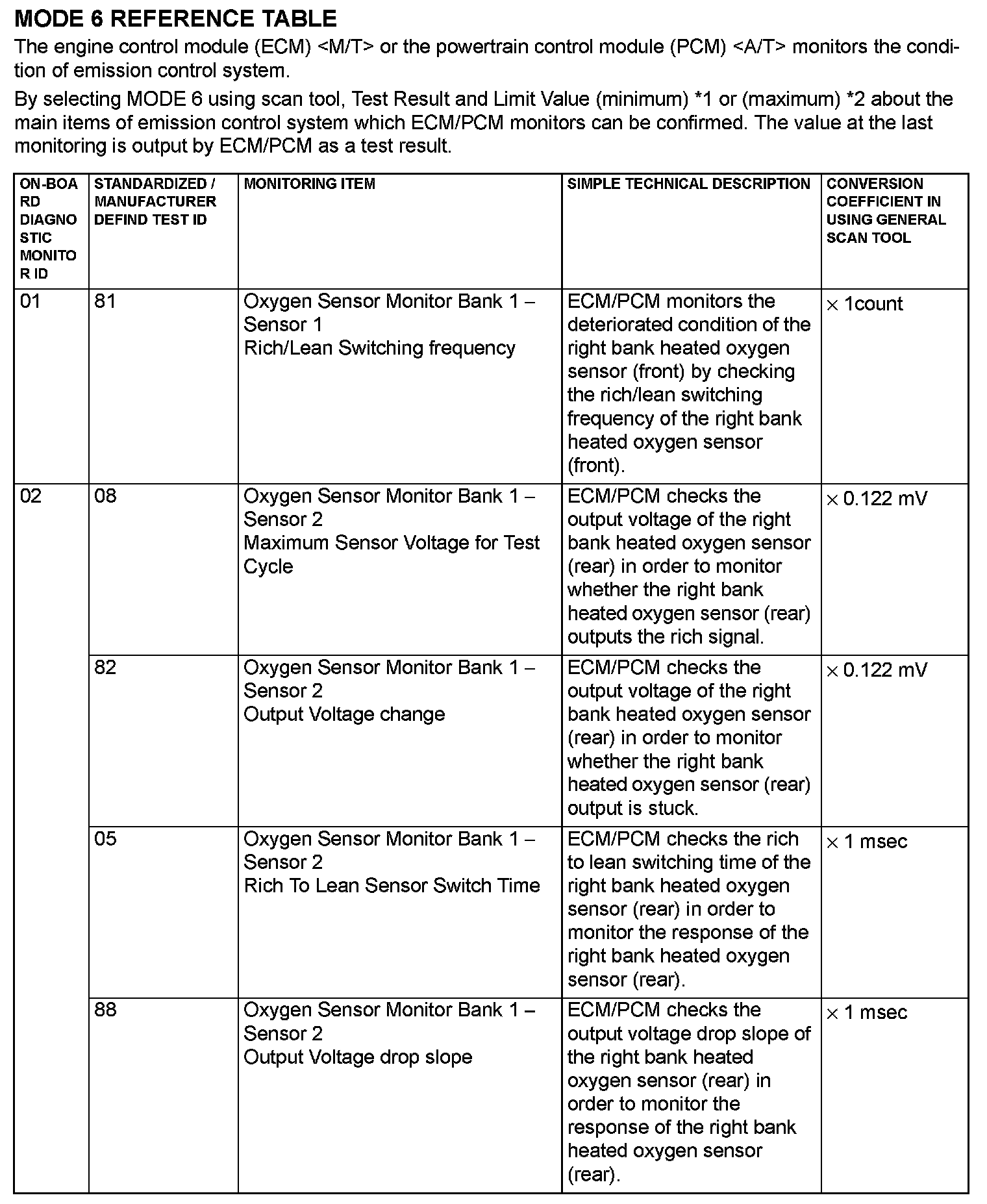 Mode 6 Reference Table (Part 2):