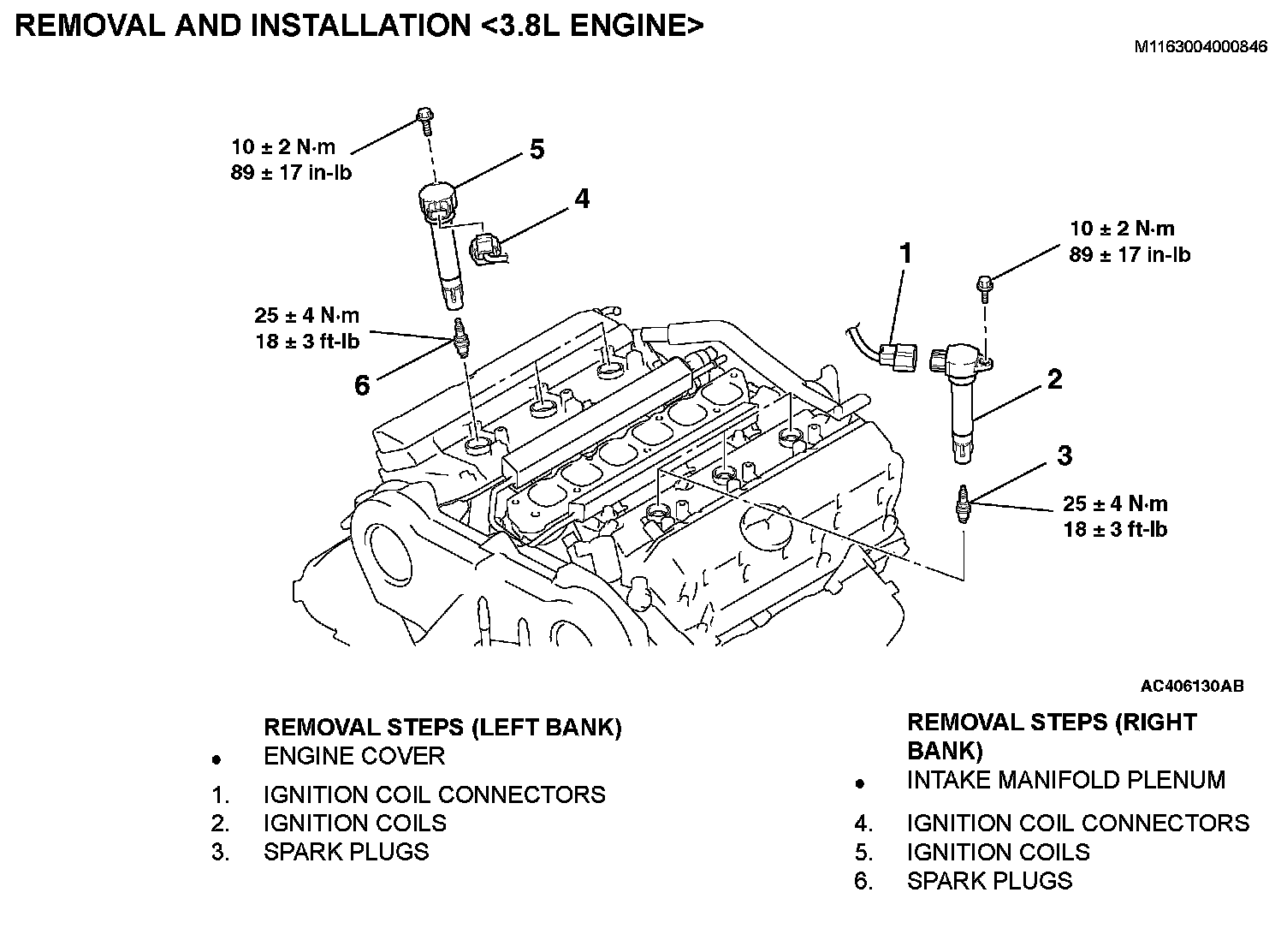 REMOVAL AND INSTALLATION [3.8L ENGINE]