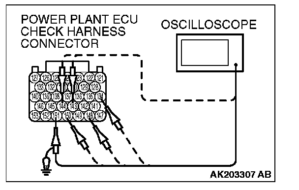 2. Connect the oscilloscope probe to each check harness connector terminal to analyze each cylinder: