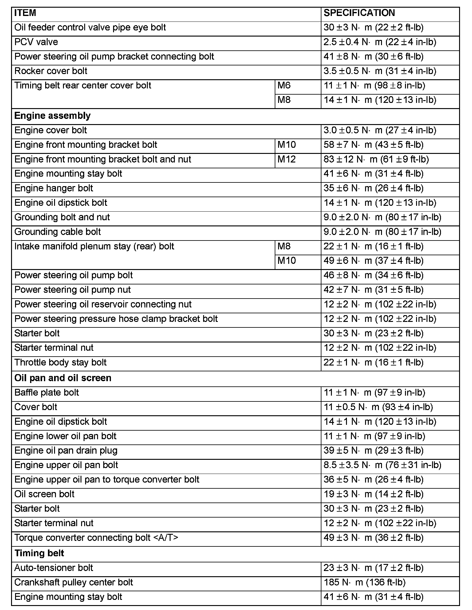 Fastener Tightening Specifications