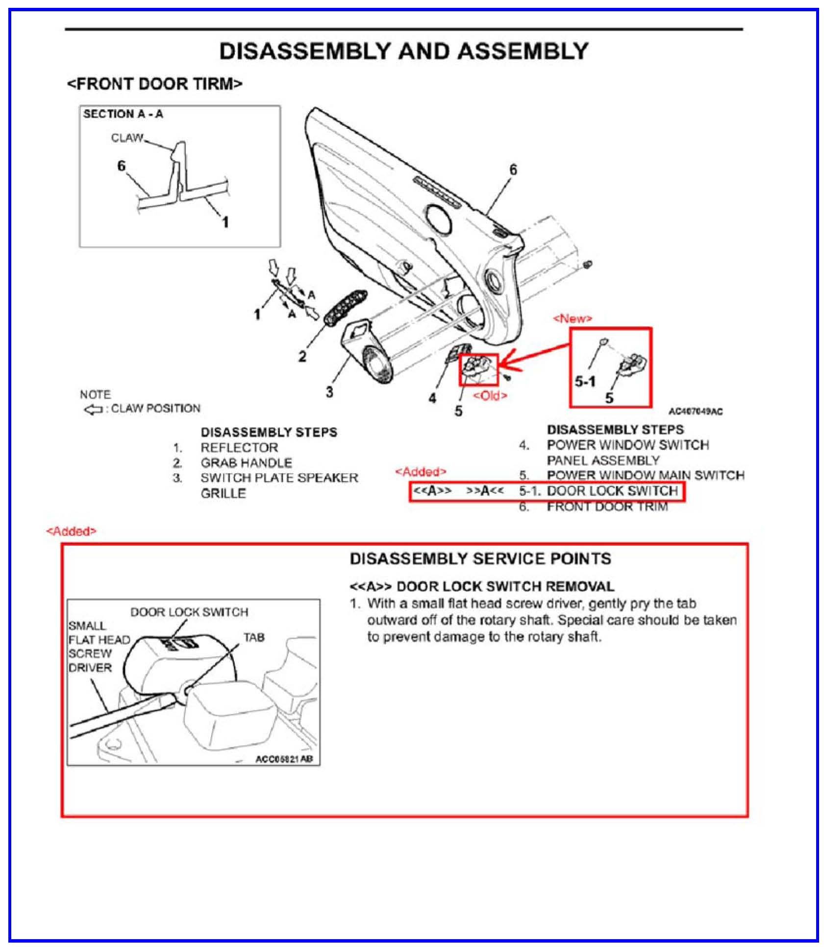 DOOR LOCK ROCKER SWITCH BUTTON REPLACEMENT - SERVICE MANUAL REVISION