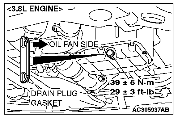 3. Install a new drain plug gasket so that it faces in the direction shown in the illustration, and then tighten the drain plug to the specified torque.