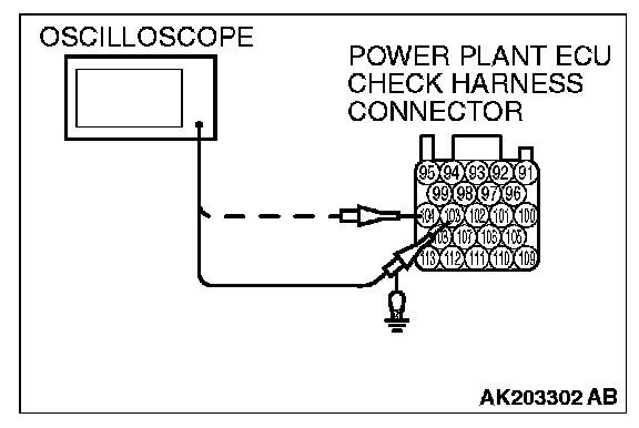 3. Connect the oscilloscope to check harness terminal No. 103. (Check the crankshaft position sensor signal wave pattern.)