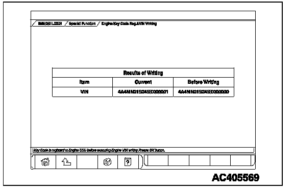 10. When the VIN writing completion menu is displayed, press the OK button.