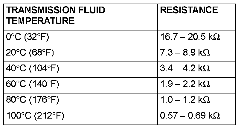 TRANSMISSION FLUID TEMPERATURE SENSOR CHECK1. Remove the transmission fluid temperature sensor.