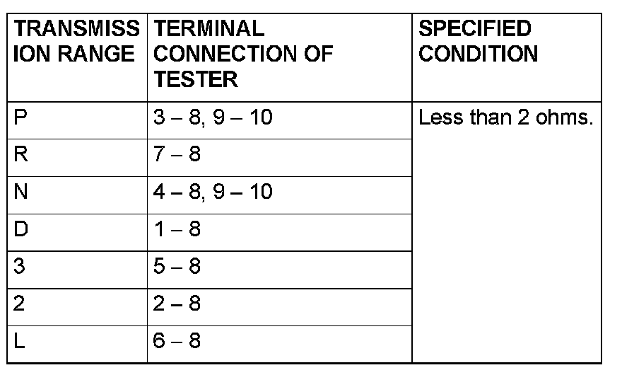 TRANSMISSION RANGE SWITCH CHECK