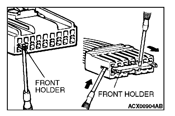 1. Insert a screwdriver [1.4 mm (0.06 inch) width] as shown in the figure, disengage the front holder, and remove it.