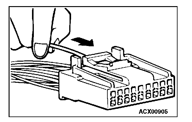 3. Insert the tip of the screwdriver [1.4 mm (0.06 inch) width] into the connector as shown in the figure, gently push the housing lance down with the tip, and pull out the terminal.