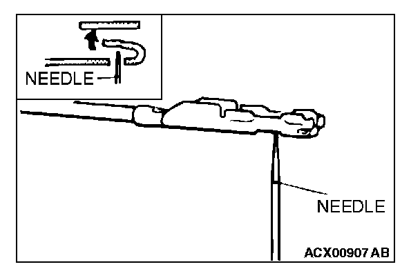 4. Insert a needle through the hole provided on the terminal and raise the contact point. Lightly squeeze the outer edge so the flats are parallel with the bottom.