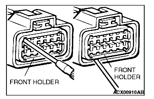 2. Push the harness wire of the terminal to be repaired deep into the connector from the harness side and hold it there.
