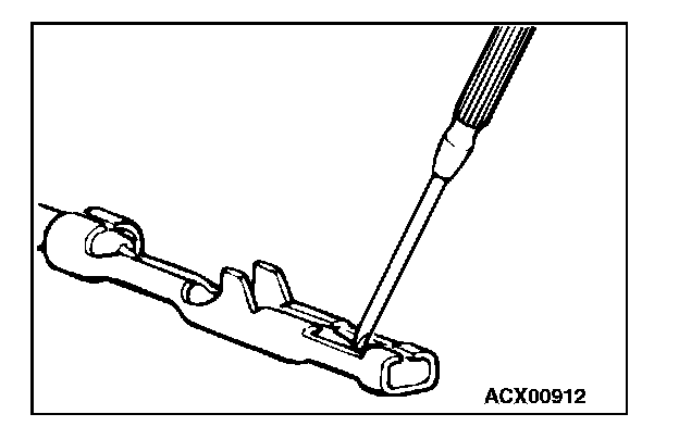 3. Press the contact point to the male terminal down by holding a screwdriver [1.4 mm (0.06 inch) width] as shown in the figure.